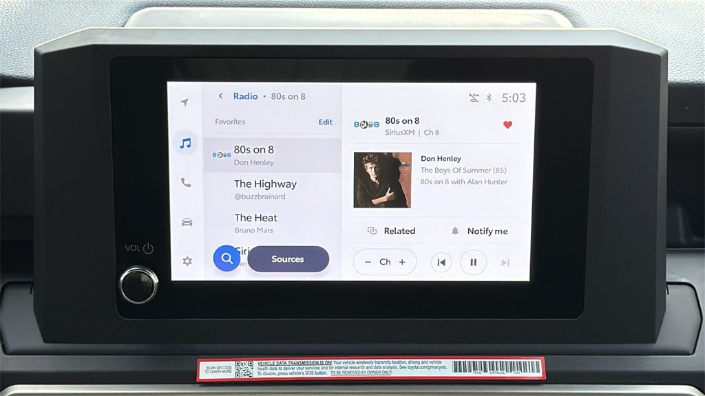 - 8-in. Toyota Audio Multimedia display with 6-speaker audio system, wireless Apple CarPlay® & Android Auto™ compatibility, SiriusXM® 3-month trial subscription. See toyota.com/connected-services for details.