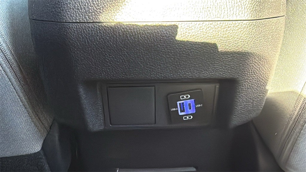 Dual illuminated rear center console-mounted USB charging ports.