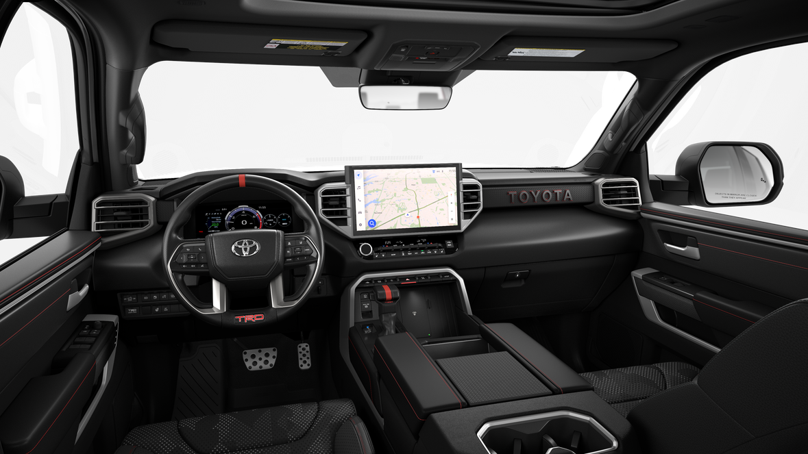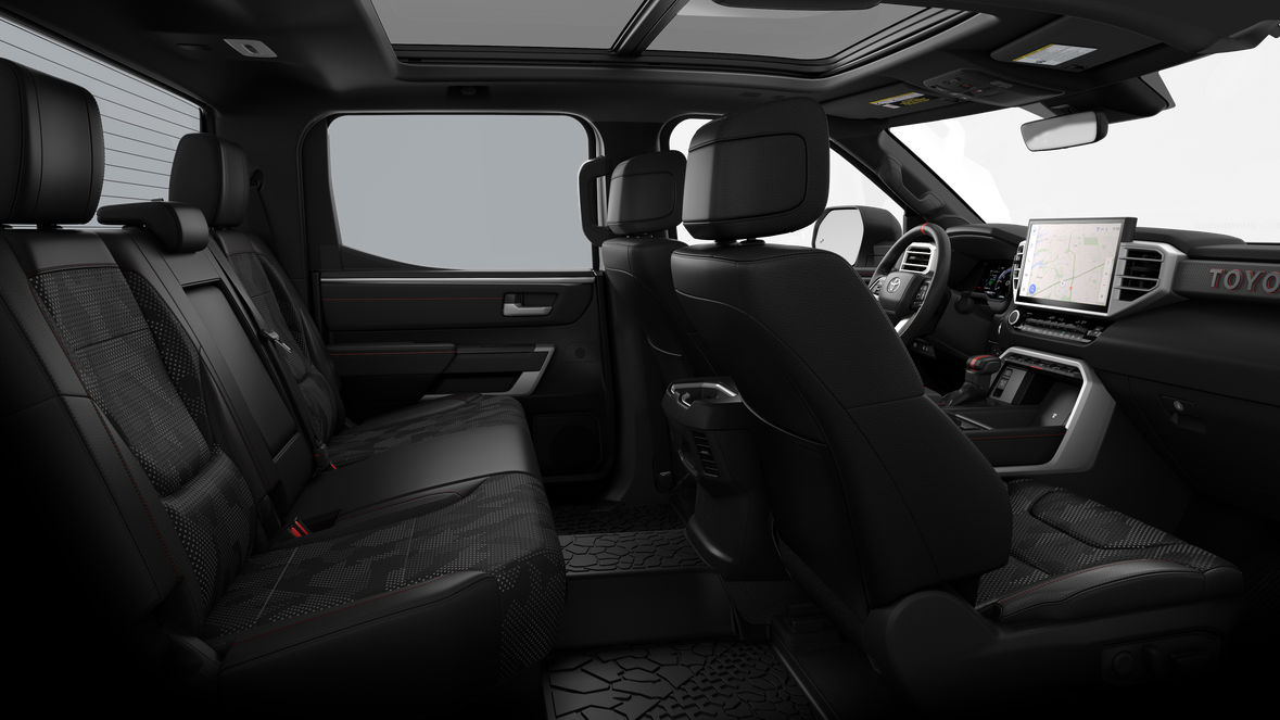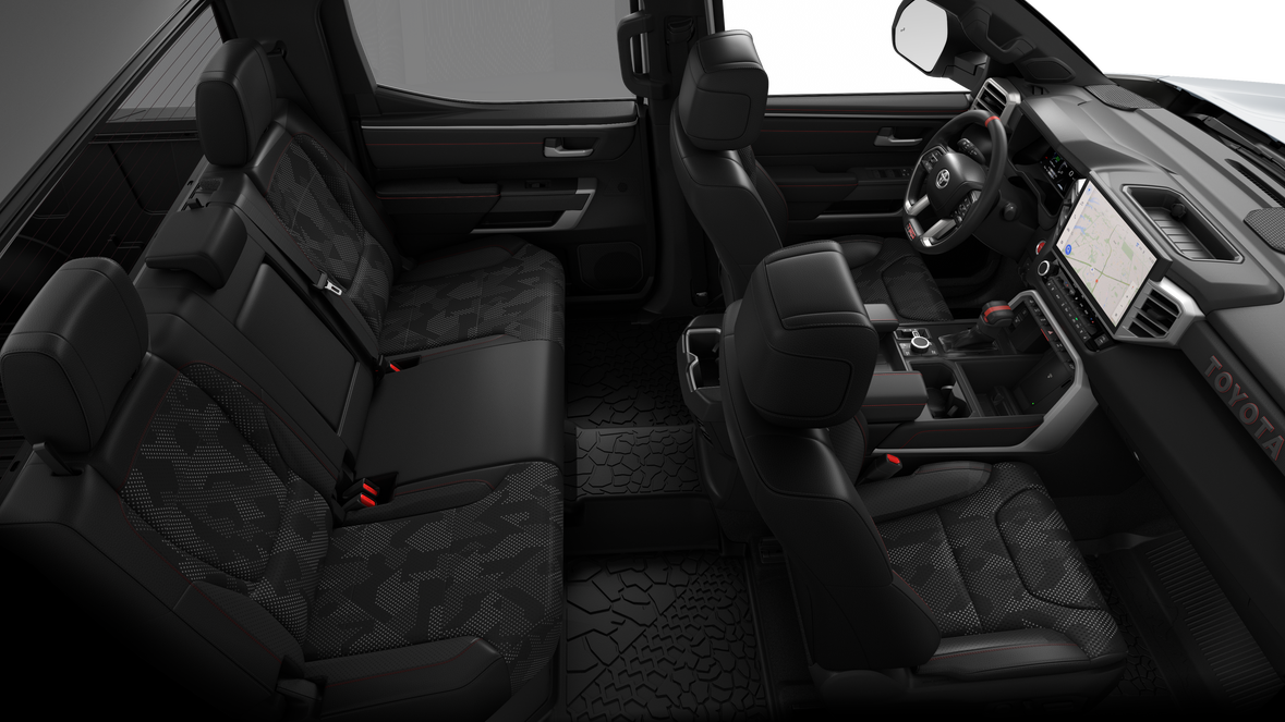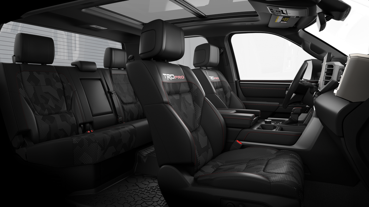 - TRD Pro SofTex®-trimmed seats with contrast stitching and technical-camo-pattern inserts; 8-way power-adjustable driver and front passenger seats with power-adjustable lumbar support