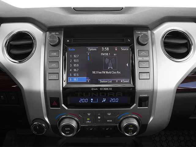 Recent Arrival! Fully Serviced, Bluetooth®, 1-Owner, Clean Carfax, Graphite Leather, 12 Speakers, 20 x 8J Split 5-Spoke Alloy Disc Wheels, 4-Wheel Disc Brakes, 4.30 Axle Ratio, ABS brakes, Air Conditioning, Alloy wheels, AM/FM radio: SiriusXM, Auto-dimming door mirrors, Auto-dimming Rear-View mirror, Automatic temperature control, Brake assist, Bumpers: body-color, CD player, Compass, Driver door bin, Driver vanity mirror, Dual front impact airbags, Dual front side impact airbags, Electronic Stability Control, Entune App Suite, Exterior Parking Camera Rear, Front anti-roll bar, Front Bucket Seats, Front Center Armrest, Front dual zone A/C, Front fog lights, Front reading lights, Front wheel independent suspension, Garage door transmitter: HomeLink, Heated & Ventilated Front Bucket Seats, Heated door mirrors, Heated front seats, Illuminated entry, Knee airbag, Leather Seat Trim, Leather steering wheel, Low tire pressure warning, Memory seat, Navigation System, Occupant sensing airbag, Outside temperature display, Overhead airbag, Overhead console, Panic alarm, Passenger door bin, Passenger vanity mirror, Power door mirrors, Power driver seat, Power moonroof, Power passenger seat, Power steering, Power windows, Radio data system, Radio: Entune Premium JBL Audio w/Navigation, Rear reading lights, Rear seat center armrest, Rear step bumper, Rear window defroster, Remote keyless entry, Security system, SIRIUSXM Satellite Radio, Speed control, Speed-sensing steering, Split folding rear seat, Steering wheel memory, Steering wheel mounted audio controls, Tachometer, Telescoping steering wheel, Tilt steering wheel, Traction control, Trip computer, Turn signal indicator mirrors, Variably intermittent wipers, Ventilated front seats, Voltmeter. Space City Toyota is proud to present you with another True Market Priced Pre-Owned Vehicle. This 2014 Toyota Tundra Platinum 5.7L V8 is loaded with the following Factory Options: Graphite Leather, 12 Speakers, 20 x 8J Split 5-Spoke Alloy Disc Wheels, 4-Wheel Disc Brakes, 4.30 Axle Ratio, ABS brakes, Air Conditioning, Alloy wheels, AM/FM radio: SiriusXM, Auto-dimming door mirrors, Auto-dimming Rear-View mirror, Automatic temperature control, Brake assist, Bumpers: body-color, CD player, Compass, Driver door bin, Driver vanity mirror, Dual front impact airbags, Dual front side impact airbags, Electronic Stability Control, Entune App Suite, Exterior Parking Camera Rear, Front anti-roll bar, Front Bucket Seats, Front Center Armrest, Front dual zone A/C, Front fog lights, Front reading lights, Front wheel independent suspension, Garage door transmitter: HomeLink, Heated & Ventilated Front Bucket Seats, Heated door mirrors, Heated front seats, Illuminated entry, Knee airbag, Leather Seat Trim, Leather steering wheel, Low tire pressure warning, Memory seat, Navigation System, Occupant sensing airbag, Outside temperature display, Overhead airbag, Overhead console, Panic alarm, Passenger door bin, Passenger vanity mirror, Power door mirrors, Power driver seat, Power moonroof, Power passenger seat, Power steering, Power windows, Radio data system, Radio: Entune Premium JBL Audio w/Navigation, Rear reading lights, Rear seat center armrest, Rear step bumper, Rear window defroster, Remote keyless entry, Security system, SIRIUSXM Satellite Radio, Speed control, Speed-sensing steering, Split folding rear seat, Steering wheel memory, Steering wheel mounted audio controls, Tachometer, Telescoping steering wheel, Tilt steering wheel, Traction control, Trip computer, Turn signal indicator mirrors, Variably intermittent wipers, Ventilated front seats, and Voltmeter Graphite Leather, 12 Speakers, 20 x 8J Split 5-Spoke Alloy Disc Wheels, 4-Wheel Disc Brakes, 4.30 Axle Ratio, ABS brakes, Air Conditioning, Alloy wheels, AM/FM radio: SiriusXM, Auto-dimming door mirrors, Auto-dimming Rear-View mirror, Automatic temperature control, Brake assist, Bumpers: body-color, CD player, Compass, Driver door bin, Driver vanity mirr