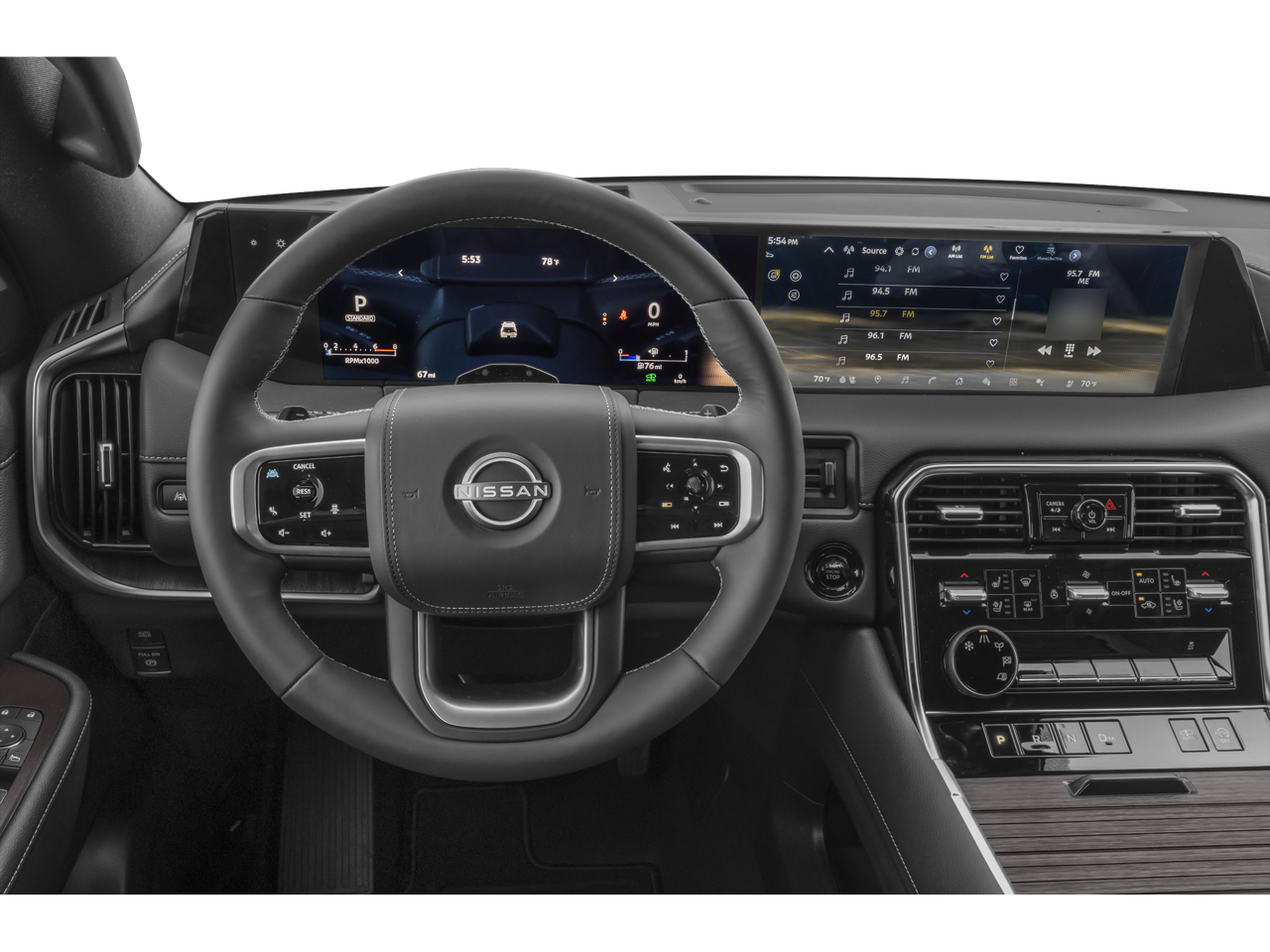 - Radio: NissanConnect w/SiriusXM 360L -inc: 12 speaker Klipsch audio system, 14.3" center touch-screen display, wireless Apple CarPlay and Android Auto, Google Assistant Maps and Playstore data, Alexa built-in, Nissan door to door connected navigation w/traffic information, Bluetooth® hands-free phone system, Bluetooth® streaming audio and messaging, voice recognition for audio features, hands-free text messaging assistant, Siri Eyes Free, USB port for compatible devices, advanced audio features, in-car 4G Wi-Fi hotspot and hybrid radio